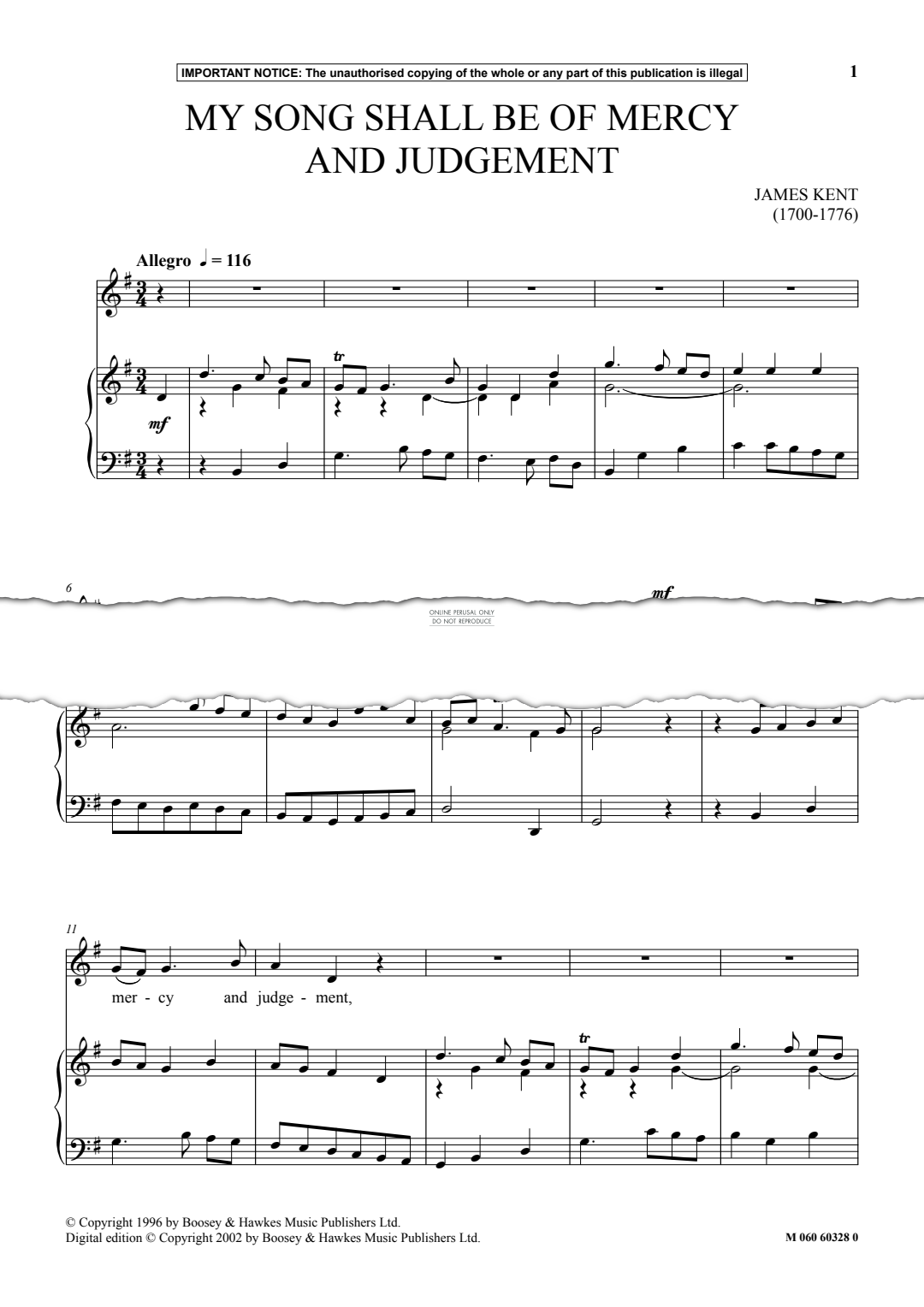 My Song Shall Be Of Mercy And Judgement - Noten für Gesang, Klavier James Kent
