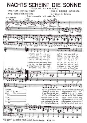 Nachts scheint die Sonne - Noten für Klavier und Gesang Michael Holm