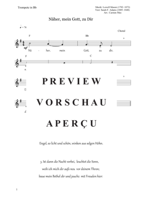Näher, mein Gott, zu Dir ist ein sehr berühmter christlicher Choral und wurde 1912 beim Untergang der "Titanic" von der Bordkapelle gespielt. Für den fortgeschrittenen Trompeter bestens geeignet. Dazu die Akkordsymbole für ein Begleitinstrument in C und 4 Liedstrophen zum Mitsingen.