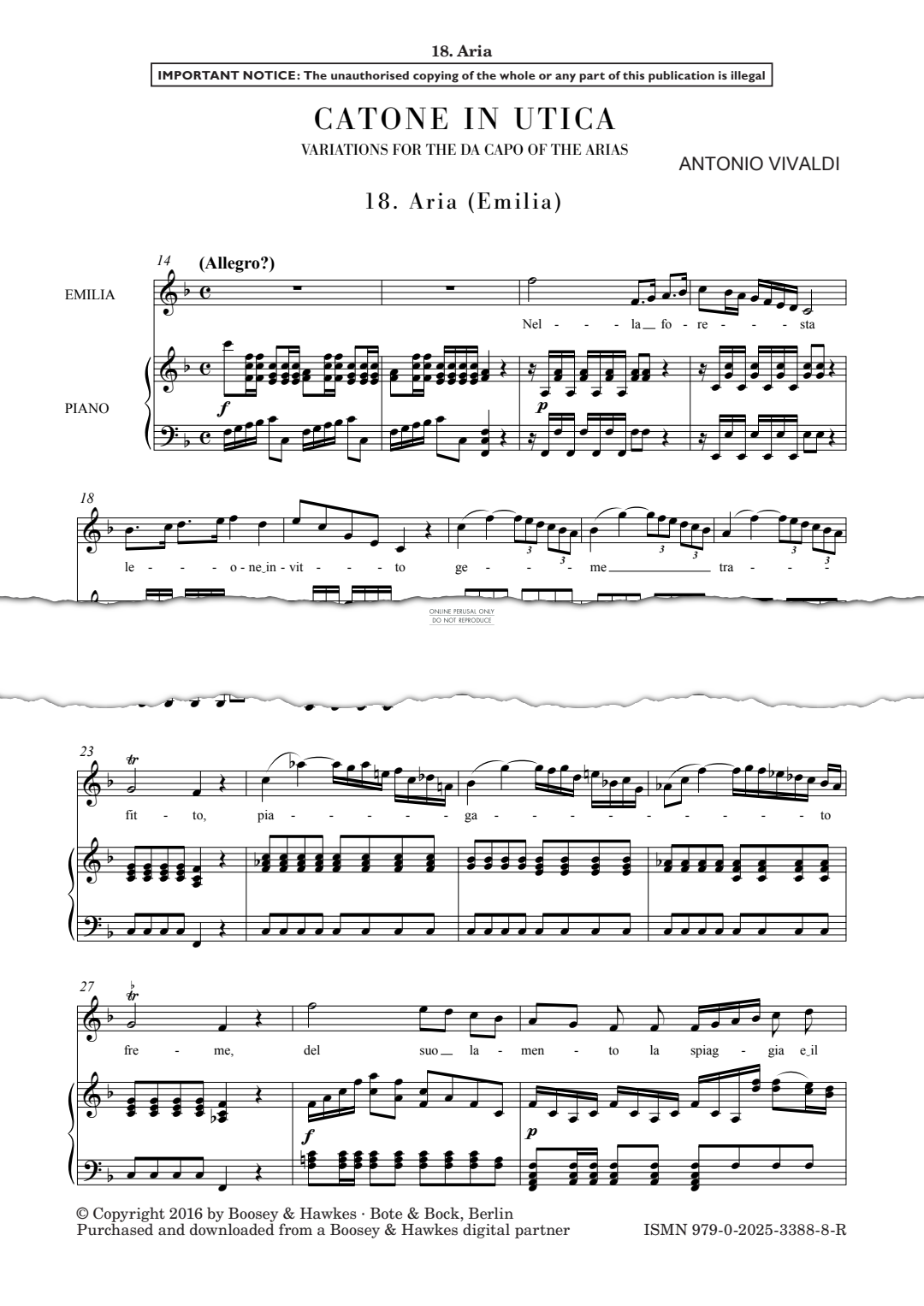 Nella foresta (from Catone in Utica) - Noten für Gesang, Klavier Antonio Vivaldi