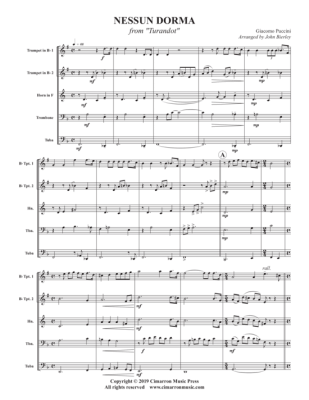 Nessun Dorma - Noten für Blechbläser Quintett Giacomo Puccini