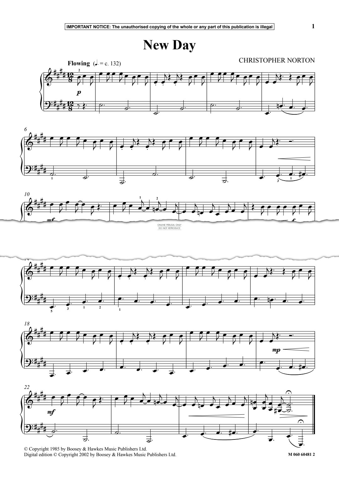 New Day - Noten für Klavier Christopher Norton