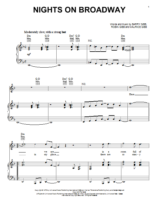 Nights On Broadway (Klavier, Gesang und Gitarrenakkorde (Melodie der rechten Hand))