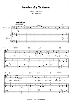 Nils Landgren´s Christmas Trombone Book is a vibrant collection of four festive pieces by the celebrated Swedish jazz trombonist. This sheet music book offers full scores for voice, trombone, and piano, plus a vocals, trombone, and guitar arrangement for "Oh No, It´s Christmas Again." It blends soulful jazz, Nordic warmth, and holiday cheer, ideal for advanced musicians in solo, ensemble, or recital settings. "Bereden väg för Herran" is a majestic hymn with soaring melodies. "Hark! the Herald Angels Sing" bursts with festive joy. "When This Night Is Over" offers tender, reflective calm. "Oh No, It´s Christmas Again" shines with playful, quirky jazz grooves. Ideal for jazz-infused holiday performances, Landgren´s works fuse virtuosity and emotional richness, enchanting players and audiences. Bring this Nordic treasure to life.