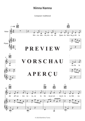 Ninna Nanna - Noten für Gesang + Klavier, Gitarre traditional