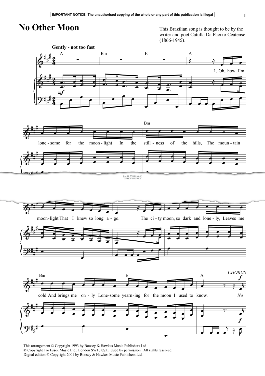 No Other Moon - Noten für Gesang, Klavier Catulla Da Pacixo Ceatense