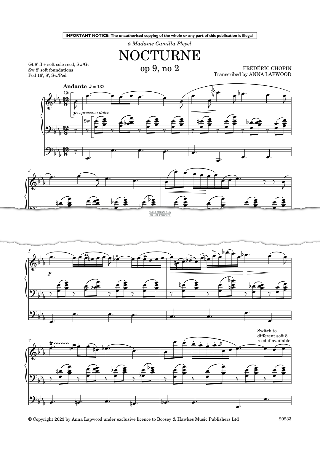 Nocturne Op.9 No.2 - Noten für Orgel Frederic Chopin