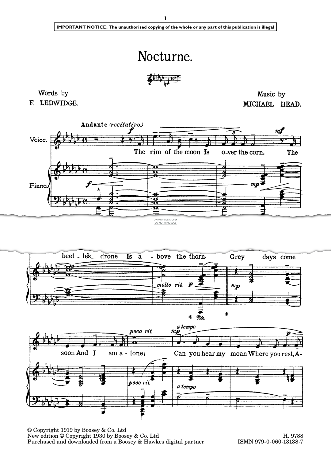 Nocturne - Noten für Gesang, Klavier Michael Head