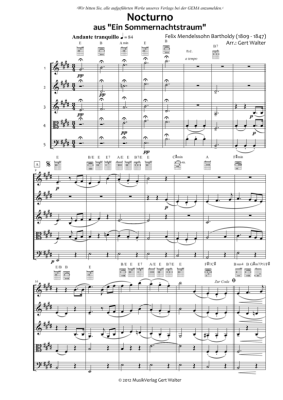 Nocturno - Noten für Quintett flexible Besetzung Felix Mendelssohn Bartholdy