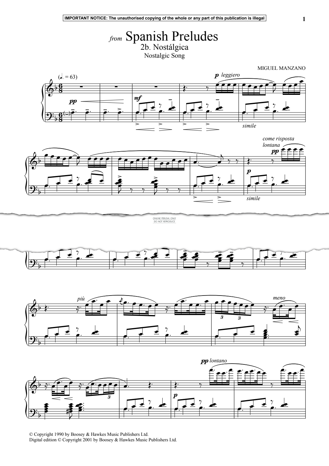 Nostalgica (Nostalgic Song) from Spanish Preludes - Noten für Klavier Miguel Manzano