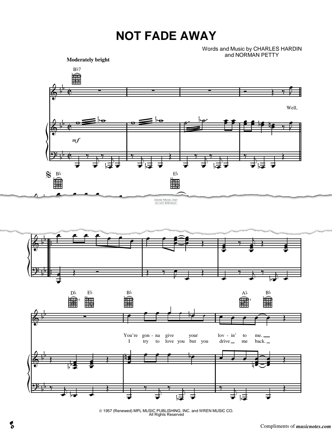 Not Fade Away - Noten für Gesang, Gitarre, Klavier Buddy Holly & The Crickets