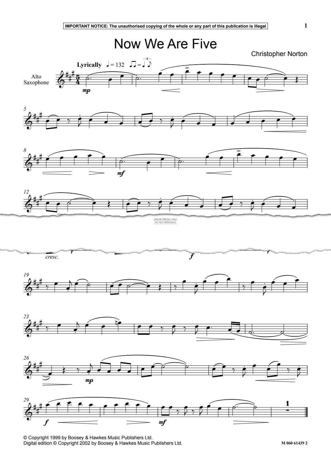Now We Are Five - Noten für Klavier, Saxophon Christopher Norton