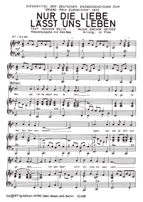 Nur die Liebe lässt uns leben - Noten für Klavier und Gesang Mary Roos