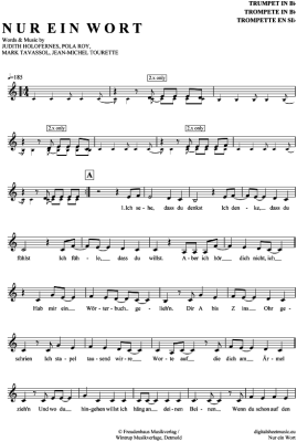 Nur ein Wort - Noten für Trompete in B Wir sind Helden