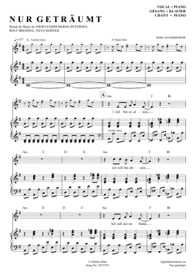 Nur geträumt - Noten für Gesang mit Klavierbegleitung Nena
