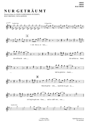 Nur geträumt - Noten für Oboe Nena