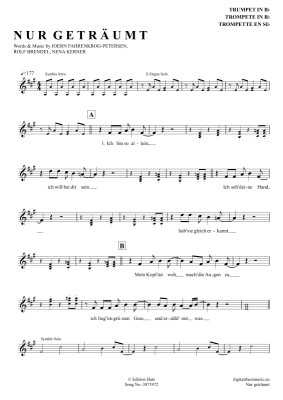 Nur geträumt - Noten für Trompete in B Nena