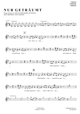 Nur geträumt - Noten für Violine Nena
