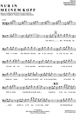 Nur in meinem Kopf - Noten für Violon-Cello Andreas Bourani