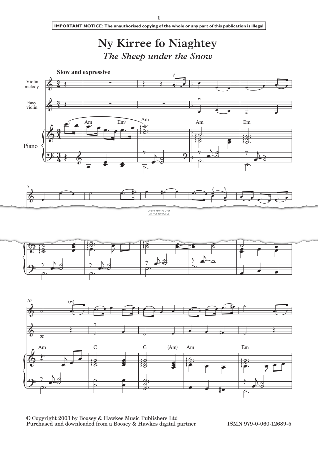 Ny Kirree fo Niaghtey (The Sheep under the Snow) - Noten für Klavier, Violine Edward Huws Jones