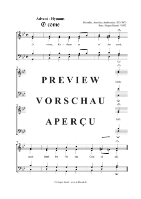 O come (Advent - Hymnus) - Noten für Gemischter Chor Aurelius Ambrosius (333-397) Satz: Jürgen Knuth*1952