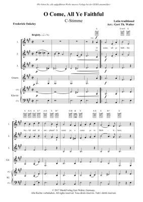 O Come, All Ye Faithful - Noten für flexibles Quintett für 3 Melodiestimmen, Gitarre + Klavier Traditional