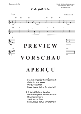 O du fröhliche (C - Dur) - Noten für Trompete in B Solo + Akkorde Weihnachtslied
