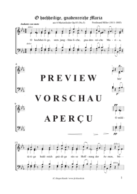 O hochheilige, gnadenreiche Maria (aus 6 Marienlieder Op.93 (No.5) - Noten für Gemischter Chor Ferdinand Hiller