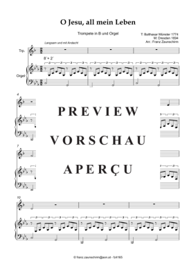 O Jesu, all mein Leben bist du - Noten für Trompete in B + Orgel Traditional