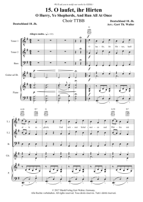 O laufet, ihr Hirten - Noten für Männerchor, Gitarre + Klavier Traditional