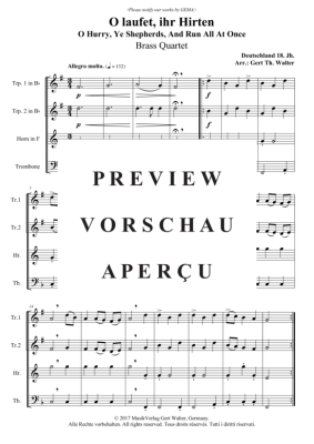 O laufet, ihr Hirten - Noten für Blechbläserquartett Traditional