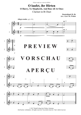 O laufet, ihr Hirten - Noten für Klarinetten Duett Traditional