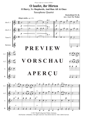 O laufet, ihr Hirten - Noten für Saxophon Quartett Traditional