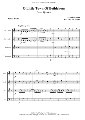 O Little Town Of Bethlehem - Noten für Blechbläserquartett Lewis H. Redner