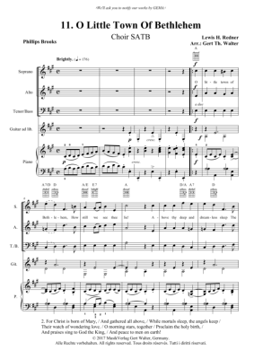 O Little Town Of Bethlehem - Noten für Gemischter Chor, Gitarre + Klavier Lewis H. Redner
