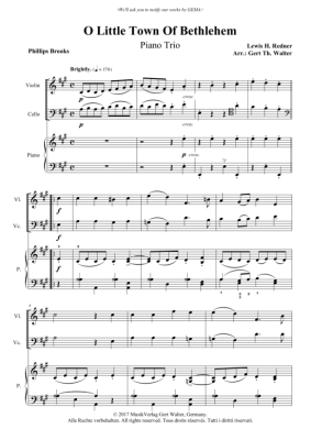 O Little Town Of Bethlehem - Noten für Violine, Violoncello + Klavier Lewis H. Redner