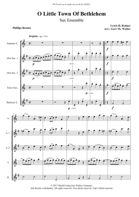 O Little Town Of Bethlehem - Noten für Saxophon Quintett Lewis H. Redner