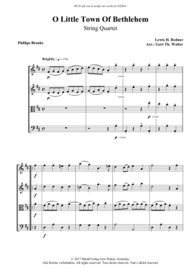 O Little Town Of Bethlehem - Noten für Streicherquartett Lewis H. Redner
