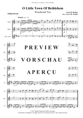 O Little Town Of Bethlehem - Noten für Holzbläser Trio Lewis H. Redner
