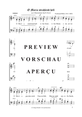 O Maria strahlend hell (aus 6 Marienlieder Op.93 (No.6) - Noten für Gemischter Chor Ferdinand Hiller