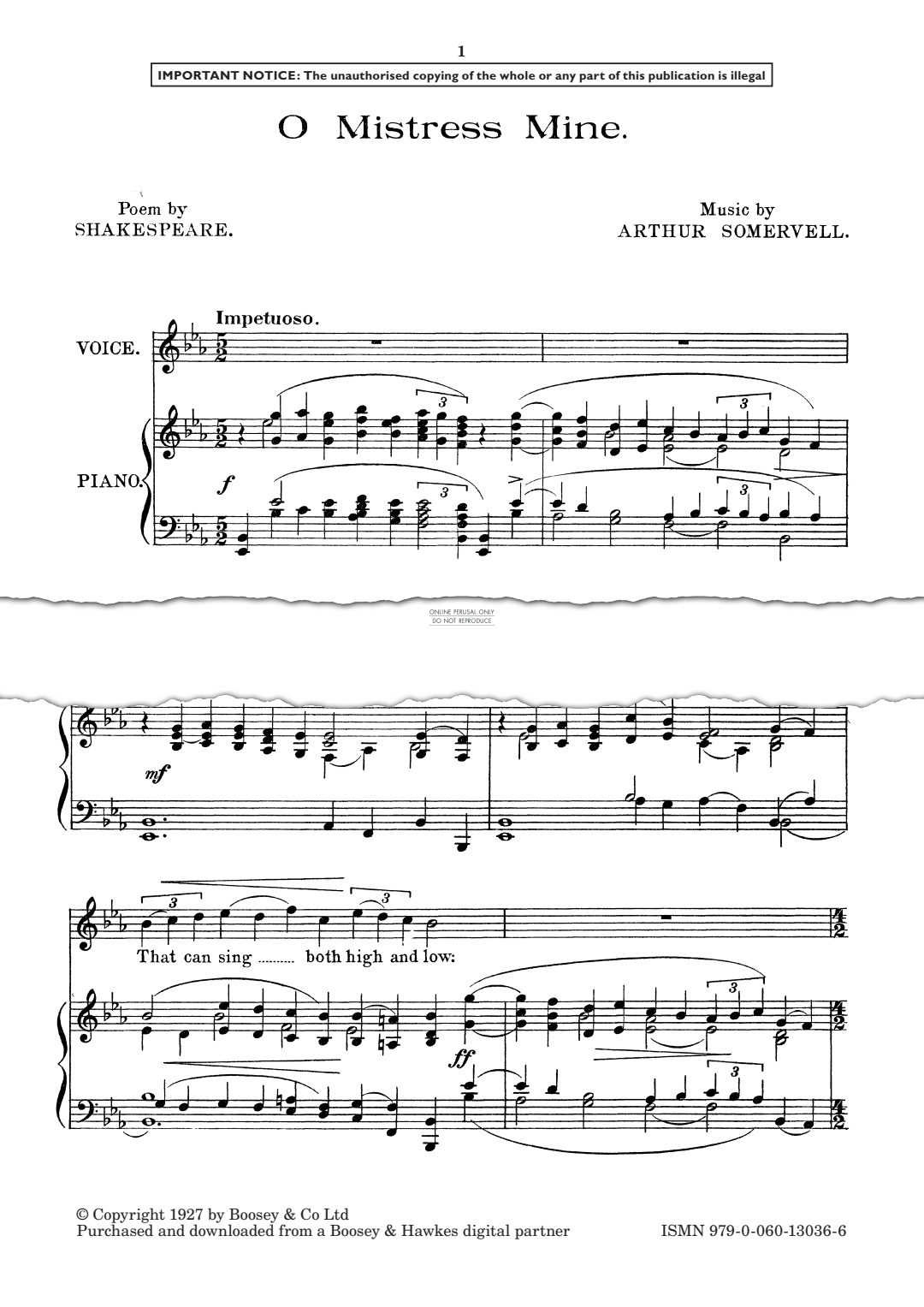 O Mistress Mine - Noten für Gesang, Klavier Arthur Somervell