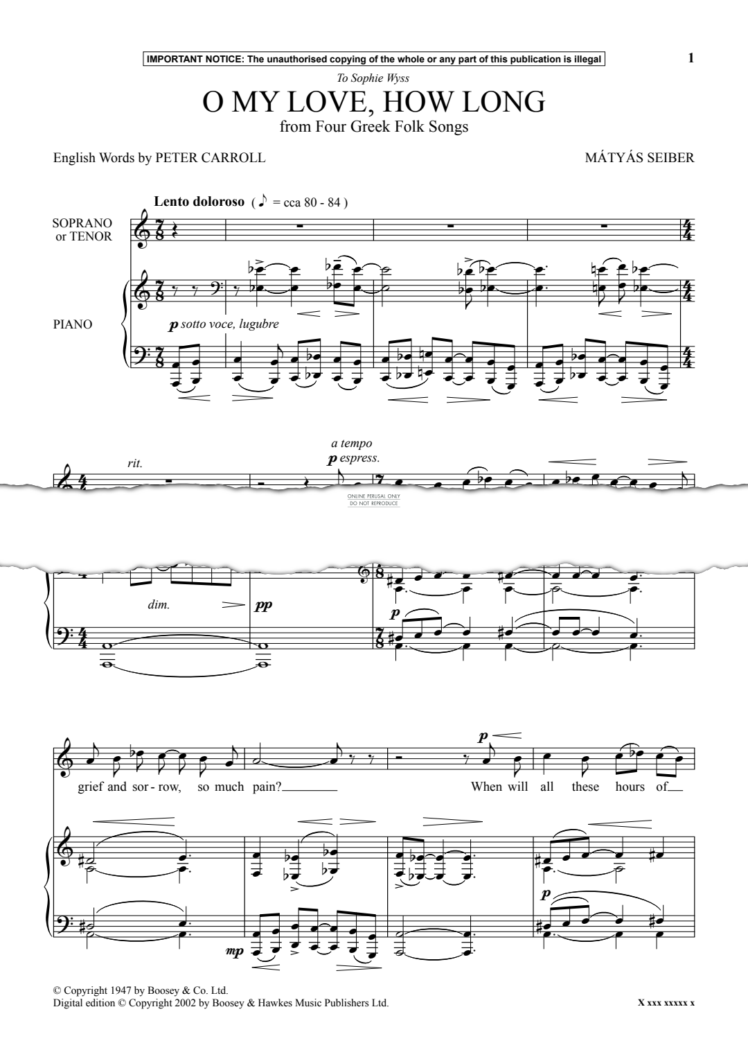 O My Love, How Long from Four Greek Folk Songs - Noten für Gesang, Klavier Mátyás Seiber