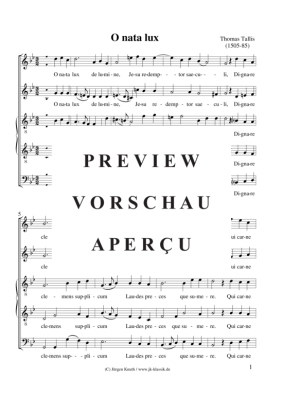 O nata lux - Noten für Gemischter Chor Thomas Tallis (c.1505-1585)