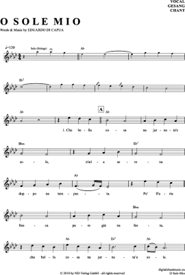 O Sole Mio - Noten für Gesang Luciano Pavarotti