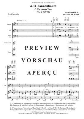 O Tannenbaum - Noten für Gemischter Chor, Gitarre + Klavier Traditional