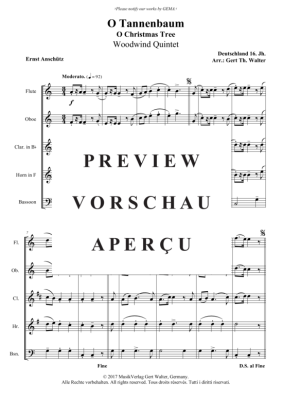 O Tannenbaum - Noten für Holzbläserquintett Traditional
