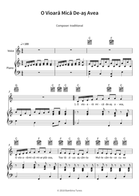 O Vioara Mica De-as Avea - Noten für Gesang + Klavier, Gitarre traditional