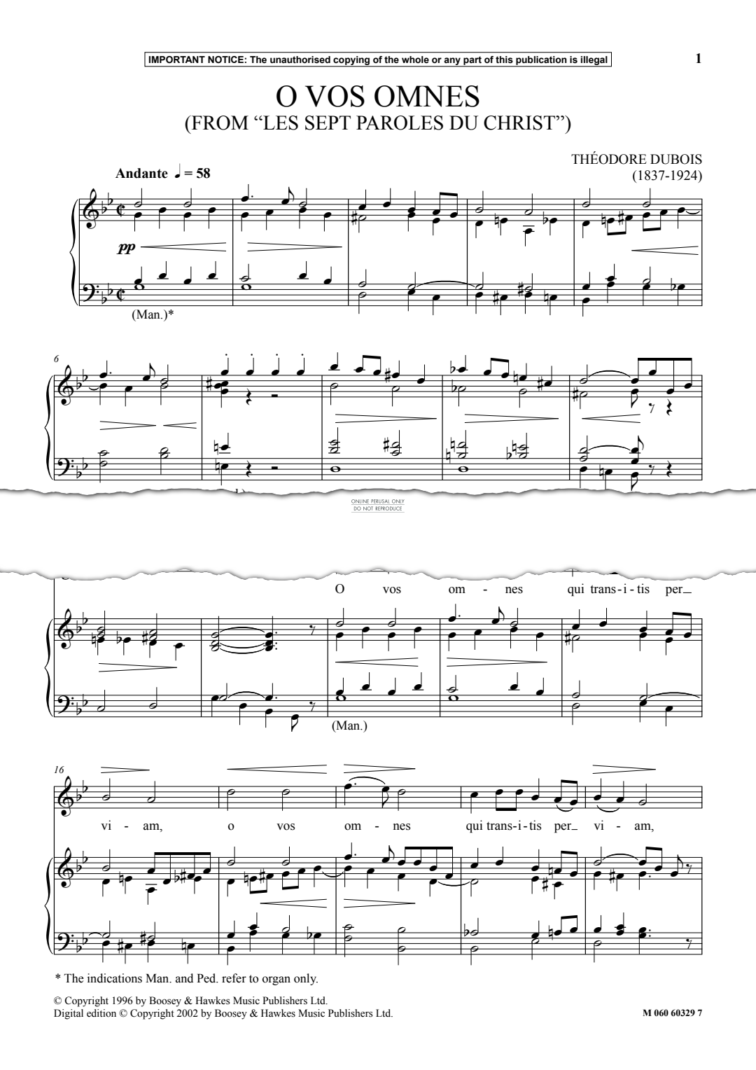 O Vos Omnes (from Les Sept Paroles Du Christ) - Noten für Gesang, Klavier, Orgel Théodore Dubois