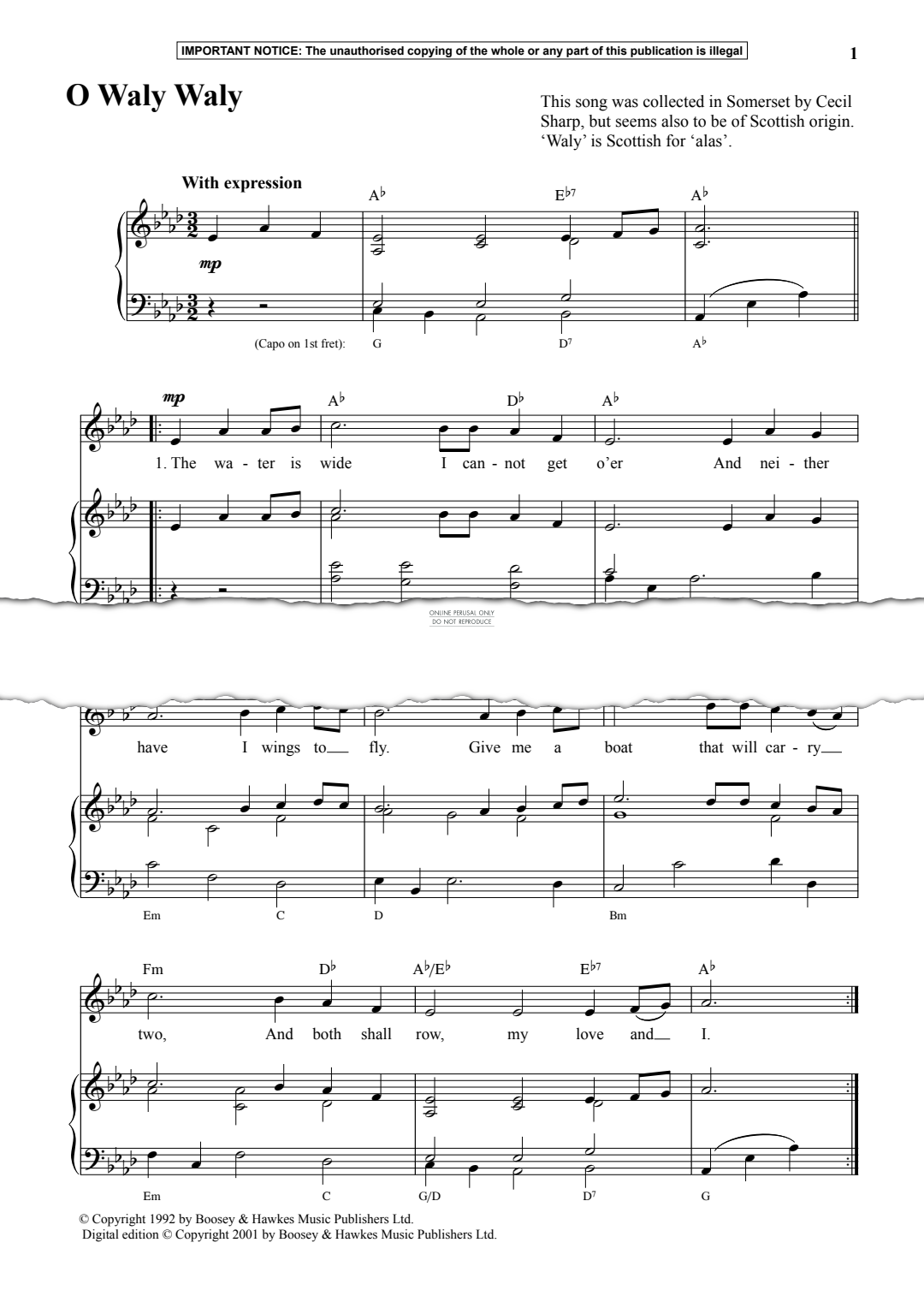 O Waly Waly - Noten für Gesang, Klavier Traditional