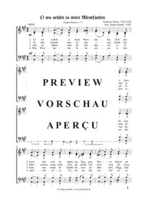 O wu schön is mien Westfaolen - Noten für Gemischter Chor Johannes Peters, 1820-1870 / Satz: Jürgen Knuth*1952